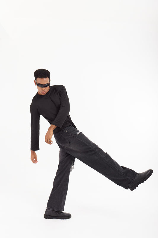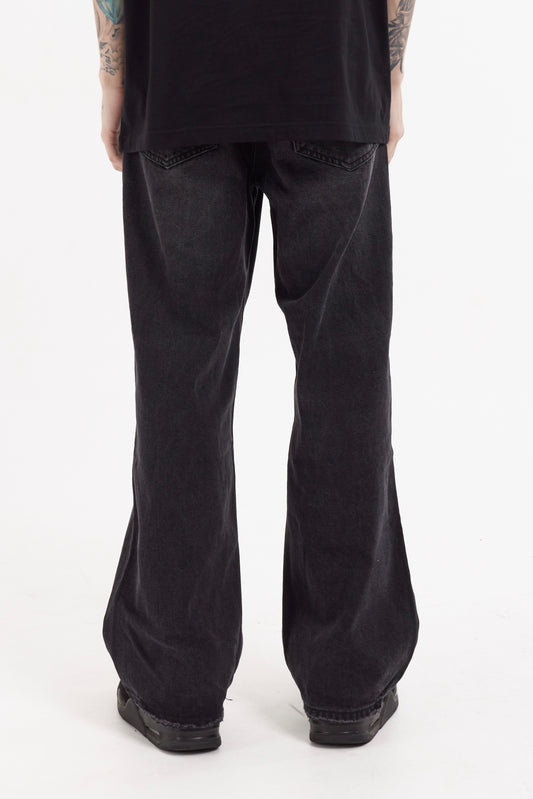 JACKTITUS กางเกงยีนส์ทรงโอเวอร์ไซส์ เอวยางยืด ทรงขาบาน